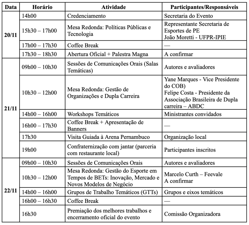 Programação GTTs (Grupos de Trabalho Temáticos)